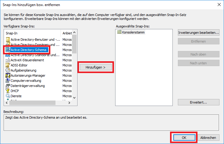 - Active Directory-Schema → Rechtsklick → Betriebsmaster…: