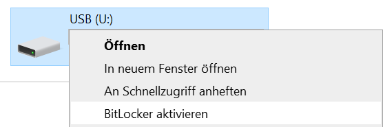 Rechtsklick auf das Laufwerk (z.B. USB-Stick, externe Festplatte, Speicherkarte…) → BitLocker aktivieren:
