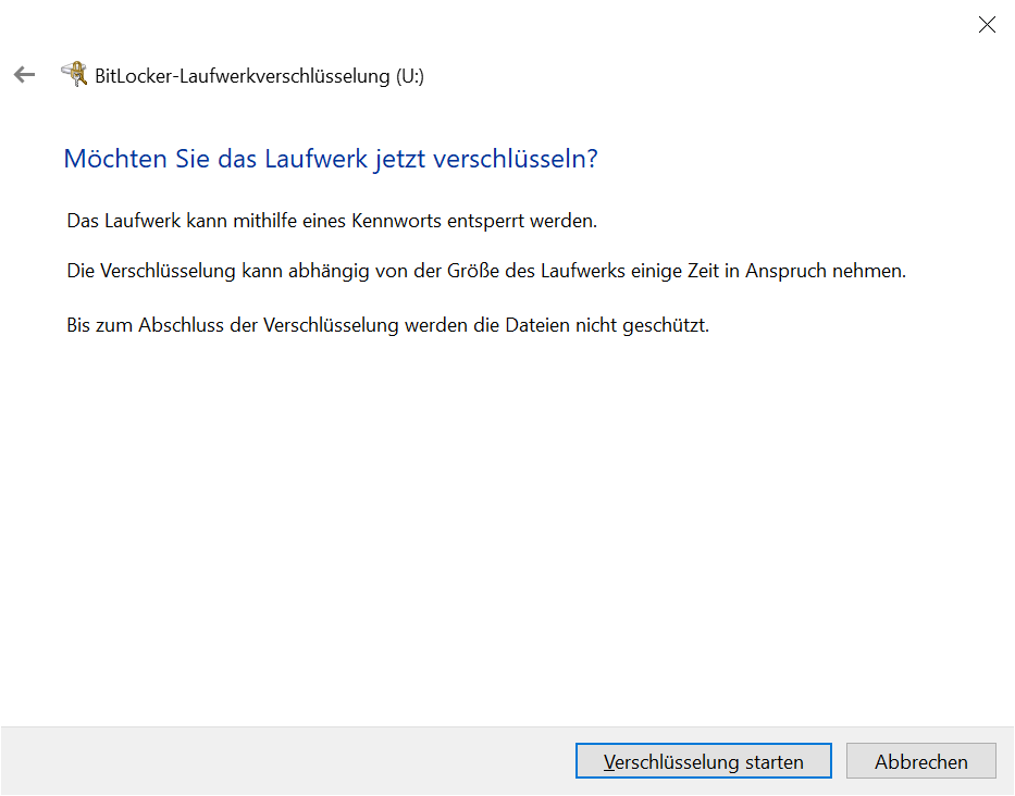 Möchten Sie das Laufwerk jetzt verschlüsseln → Verschlüsselung starten: