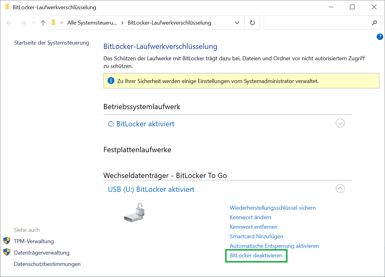 BitLocker deaktivieren: