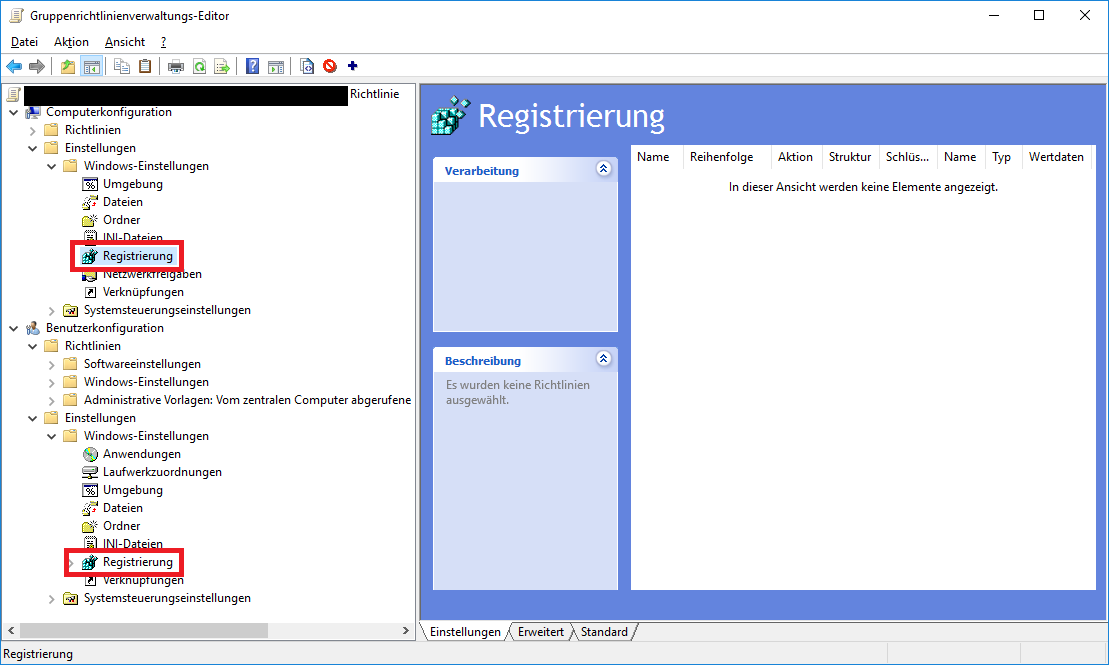 Tipp: In Domänenumgebungen, können Registry-Einträge auch über eine Gruppenrichtlinie angelegt werden: